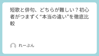 雑学 短歌と俳句、どちらが難しい?初心者がつまずく“本当の違い”を徹底比較 短歌と俳句のどちらから始めればいいのか迷ってしまうことはありませんか?なんとなく難しそう……と感じている方も多いはずです。でも、実はそれぞれに違った美しさがあり、その“難しさ”には方向性があります。このページでは、やさしい視点でその違いを丁... 雑学