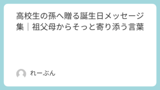 家庭 高校生の孫へ贈る誕生日メッセージ集|祖父母からそっと寄り添う言葉 大切なお孫さんが高校生になり、少しずつ大人に近づいていく姿を見守る中で、 「お誕生日にどんな言葉をかければいいのだろう」と悩まれる祖父母の方もいらっしゃるのではないでしょうか。思春期を迎えた子どもたちは、距離をとりたがる一方で、心のどこかで... 家庭