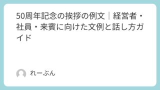 社会 50周年記念の挨拶の例文|経営者・社員・来賓に向けた文例と話し方ガイド 50年という長い年月を迎えることは、決して当たり前ではありません。そこには、多くの方々の支えや努力、信頼の積み重ねがあります。周年挨拶は、その歩みを振り返り、感謝を丁寧に伝える大切な場面です。この記事では、実際に使える挨拶の構成や文例をわか... 社会