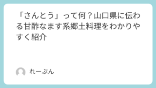 雑学 「さんとう」って何?山口県に伝わる甘酢なます系郷土料理をわかりやすく紹介 山口県で昔から親しまれてきた「さんとう」は、名前だけ聞くとどんな料理なのか想像しにくいものです。ですが実は、家庭の中で大切に受け継がれてきた甘酢仕立てのやさしい一品で、どこか懐かしさを感じる味わいが魅力です。初めて知った人でも、身近な食材で... 雑学