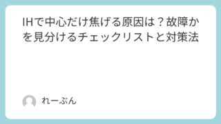 家庭 IHで中心だけ焦げる原因は?故障かを見分けるチェックリストと対策法 IHクッキングヒーターで「中心だけ焦げる」「外側が生焼けになる」といった温度ムラが起きていませんか。実はこの現象、必ずしもIH本体の故障とは限りません。多くのケースでは、鍋の反りや汚れ、火力設定、食材の扱い方など、日常的な使い方が原因となっ... 家庭