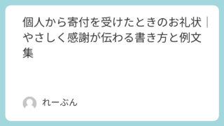 社会 個人から寄付を受けたときのお礼状|やさしく感謝が伝わる書き方と例文集 個人から寄付をいただいたとき、「お礼状は出したほうがいいの?」と迷う方は多いものです。実は、お礼状は義務ではありませんが、丁寧に感謝を伝えることで信頼と温かい関係が生まれます。この記事では、個人寄付のお礼状をテーマに、書き方の基本・避けたい... 社会